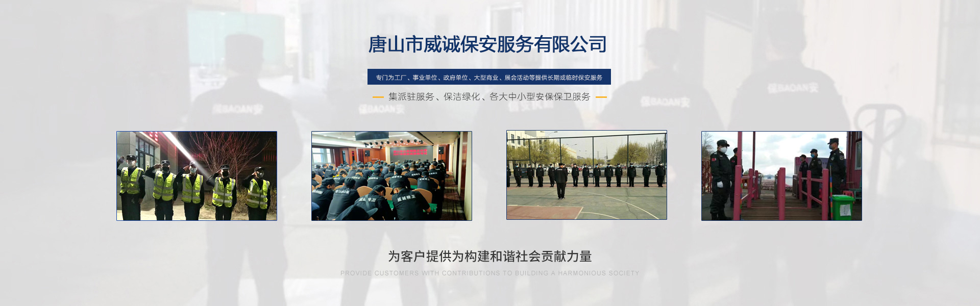 唐山市威誠保安服務有限公司自成立以來以“嚴防死守、忠于業主”為服務原則,以“客戶滿意、 合作共贏”為根本目標。以科學的管理、多方位多層次的服務,建立了首問責任制,完善了走訪、回訪 、滿意度調查、末位淘汰的預警管理,不斷提高服務質量,提高業主滿意度,提高企業形象。秉承“誠 實守信,紀律嚴明,團結協作,致精致誠”的服務理念,為客戶提供高品質、多方位、專業化的保安服務。 本公司制定了嚴謹的定向招生、崗前培訓、考核錄用、崗中培訓、持續培訓、末位淘汰制等一整套完善的管理體系??梢愿鶕蛻舻囊髮嵉乜辈煸u估,以量身定做的方式提供安保防范服務。